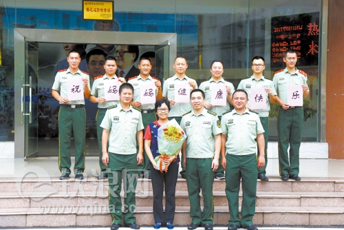 8月20日一大早,21年如一日爱兵胜爱子的兵妈妈吕英要来单位探望慰问的消息,在钦州边防检查站传开了。官兵们相互传递着这一消息,心情非常激动。尤其是曾经受过兵妈妈教育辅导考上军校的王向明、覃振刚、颜雪凯、赵雷、刘敏、李恒等更是起了个大早,准备迎接兵妈妈的到来。